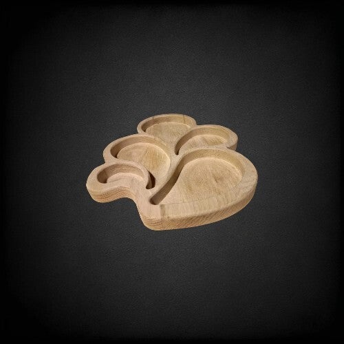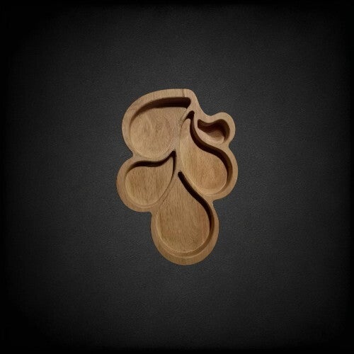 Bladvormig ontwerp: Het meest in het oog springende kenmerk van deze borrelplank is het gevormde ontwerp. Het houten oppervlak is met zorg en precisie uitgefreest in de vorm van een blad. Dit ontwerp creëerd een esthetische dimensie toe aan de plank en maakt het tot een visueel aantrekkelijke decoratie.