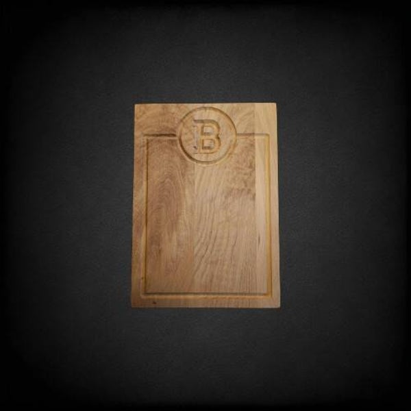 Deze prachtige houten snijplank is niet alleen functioneel, maar ook stijlvol gepersonaliseerd. Het is voorzien van een robuust ontwerp met een praktische sapgoot die zorgt dat vocht van gesneden voedsel wordt opgevangen. Bovenaan de plank is een elegant gegraveerde "A" aangebracht, wat het een uniek en persoonlijk tintje geeft.
